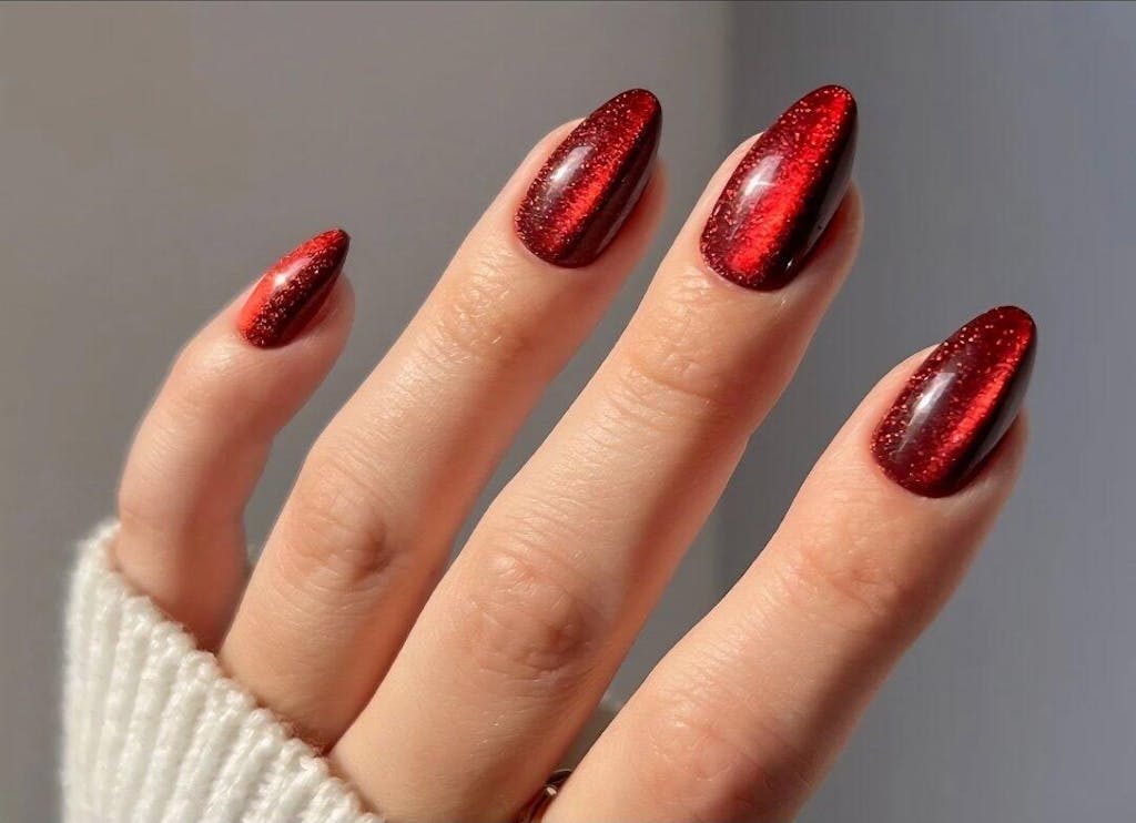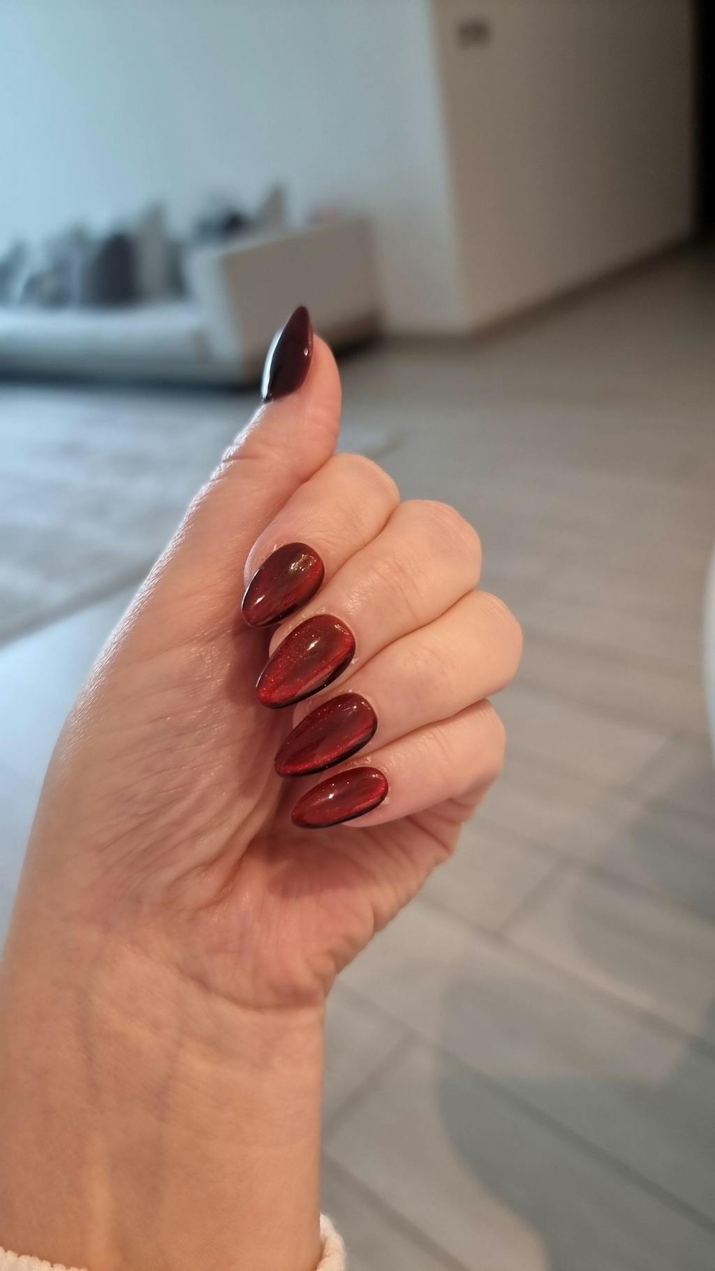 The Ruby Slippers Almond Cat Eye set is absolutely stunning. The deep red sparkle and cat-eye effect catch the light beautifully and look so luxurious on the nails. It’s the perfect shade if you want something bold but still elegant.